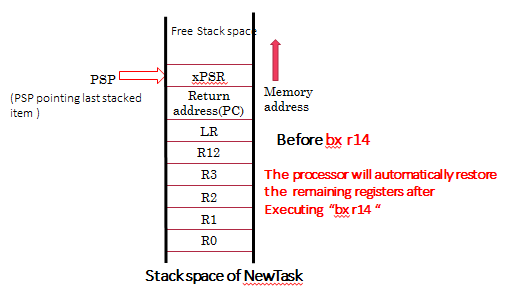 Now, the first member of the TCB is updated with new top of the stack. i.e. value in the register R0.