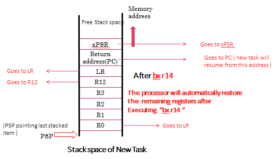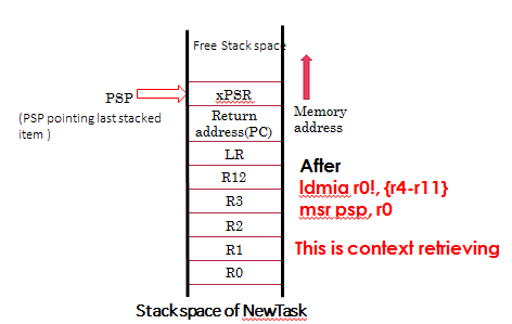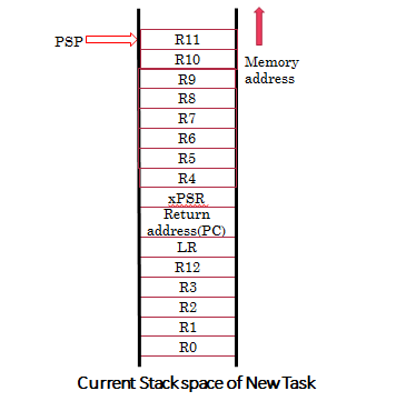 This is the Current Stack state of the New Task after “ldmia R0!, {R4-R11}”
