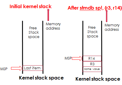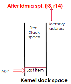 After “stmdb R0!, {R4-R11} , R0″ will be pointing to the new top of the stack isn’t it ??