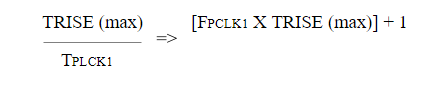 If the mode is the fast mode, TIRSE is obtained by multiplying PCLK1 obtained from RCC with the maximum TRISE in the standard mode that is 300ns. Then the multiplied value is divided by 1MHz and add 1 to the result.